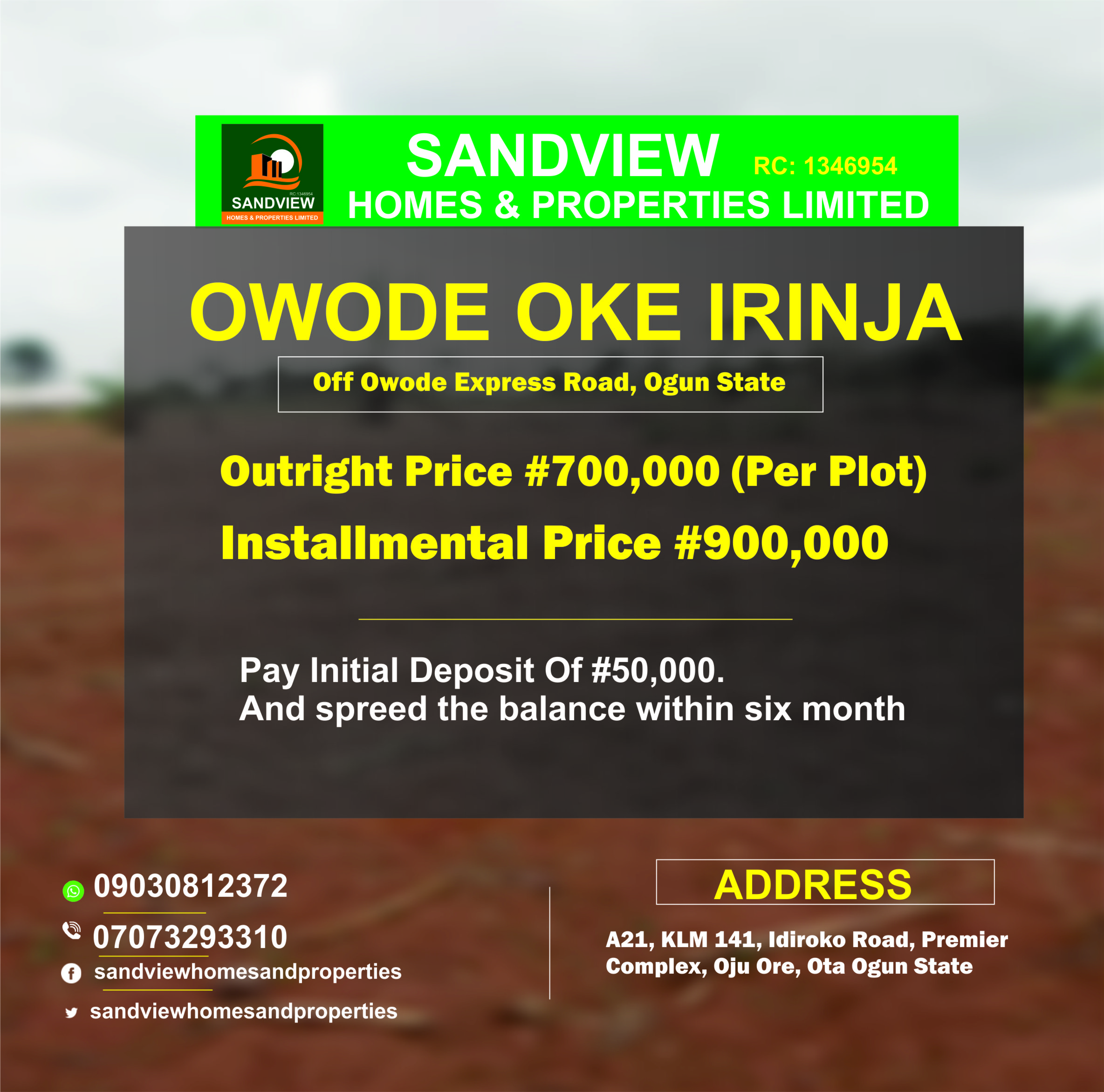 Sandview Homes and Property was founded by Engineer Tofunmi O.F on 8th March 2010 and recieved it's certificate of incorporation on 8th March 2010 and received it's Certificate of Incorporation on 13th October, 2015 and 11th July 2016.
