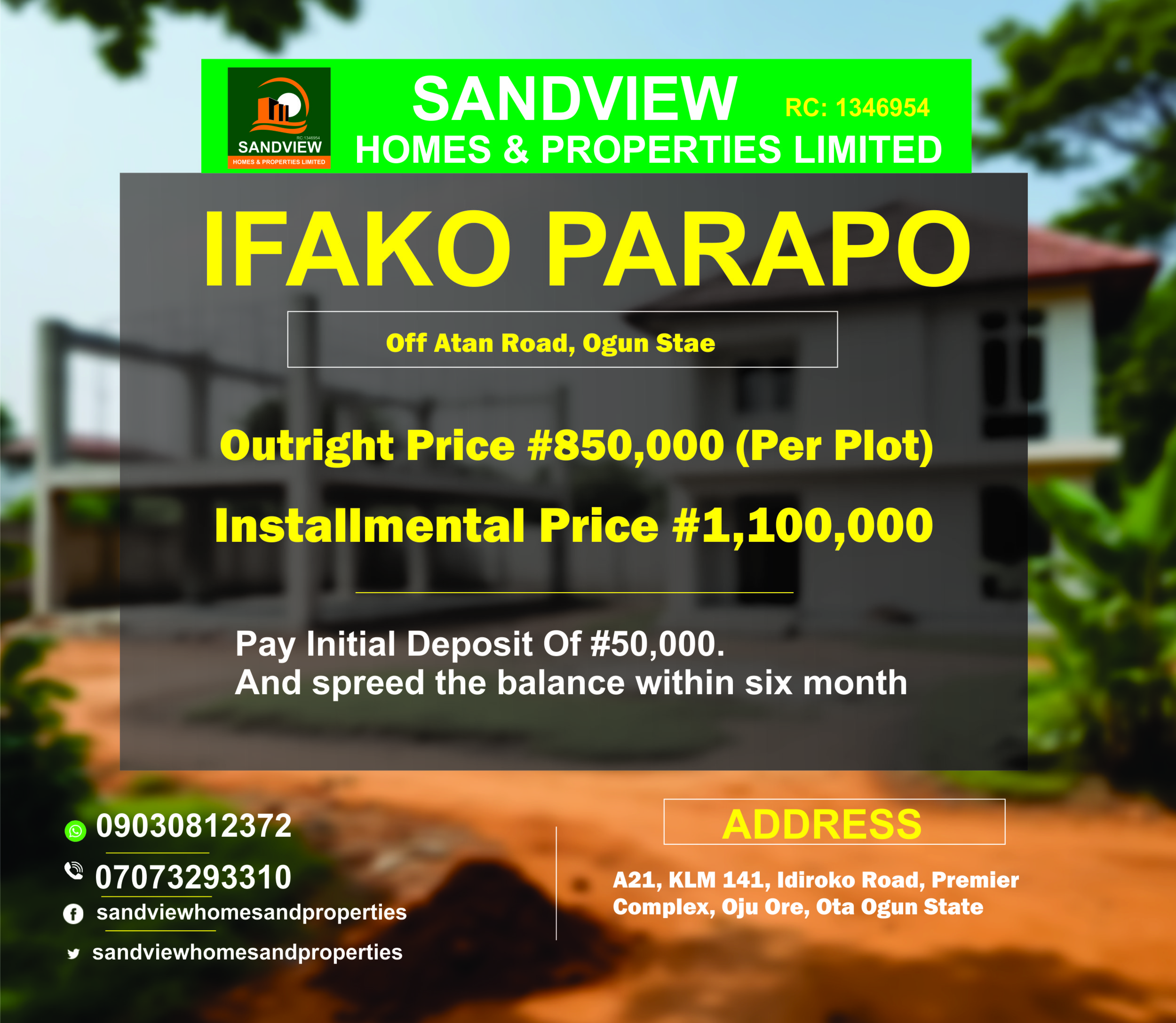 I recently purchase a plot land from Sanview Homes and Ptoperties, They made every process so easy from